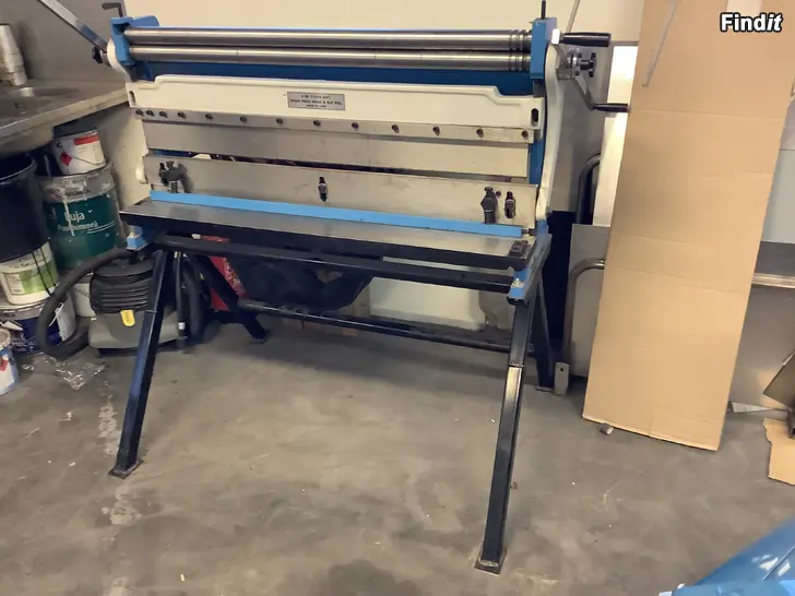 Uudenveroinen monitoimikone pellin muotoiluun ja leikkaamiseen. Pyöristys mankeli, leikkuri ja särmäri omilla jaloilla seisova paketti