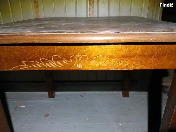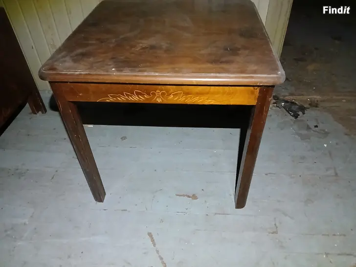 Gammalt bord, enligt bilder. Finns lite fix. Mått: 80x80cm. Höjd 72cm.