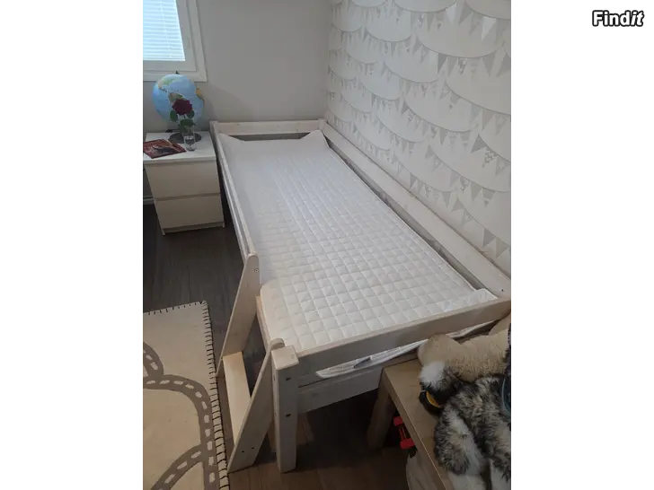 Säljes barnsäng 80x200. Blivit avkortad från en högsäng. Bra iskick. Medföljer madrass samt madrass skydd