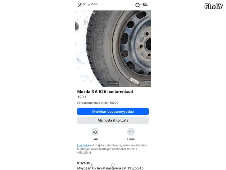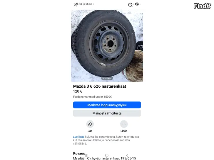 195/65-15 Ok nastarenkaat mazdoihin
