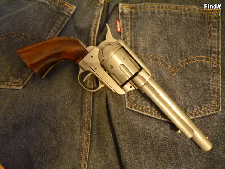 Colt kopiot, oikeankokoiset metallia, koristeeksi seinälle, voi virittää ja laukaista. Kuvassa oleva serifin merkki ei kuulu kauppaan.