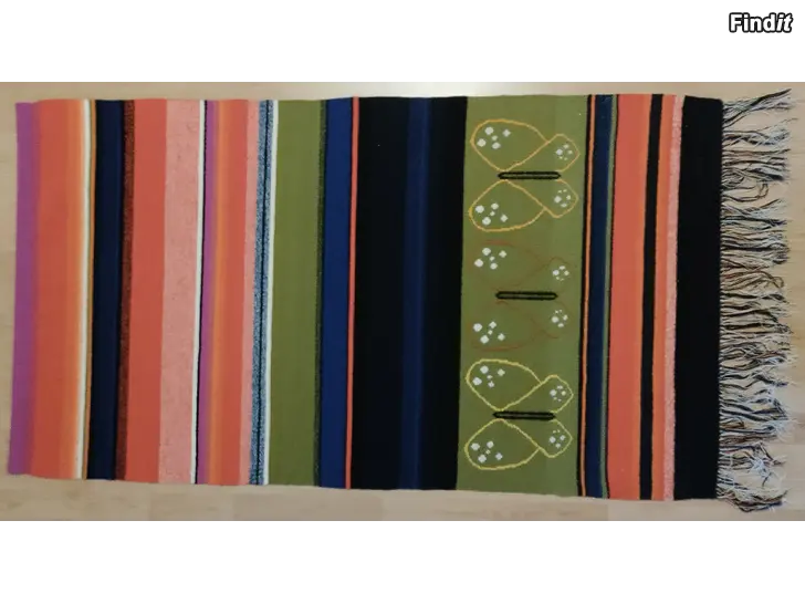 Hyväkuntoinen, ei paljon käytössä ollut, ei hajua. Pituus ja leveys n. 150 x 80, plus hapsut.