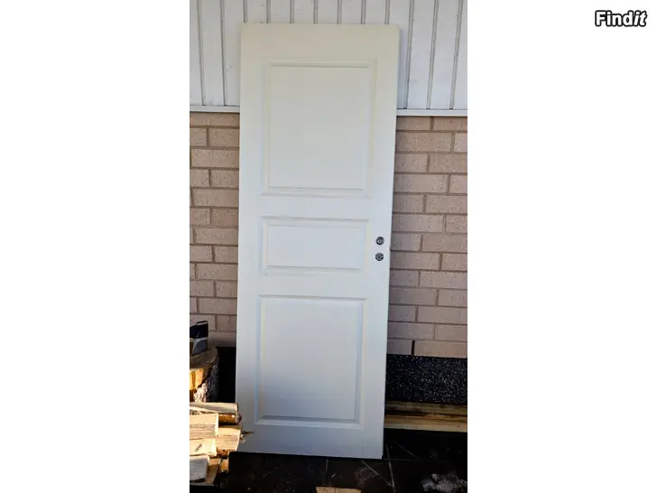 2. Innerdörr 84 cm. Ena sidan i bra skick, andra sidan behöver lite färg. Ny karm medföljer. Inga handtag. 40 e