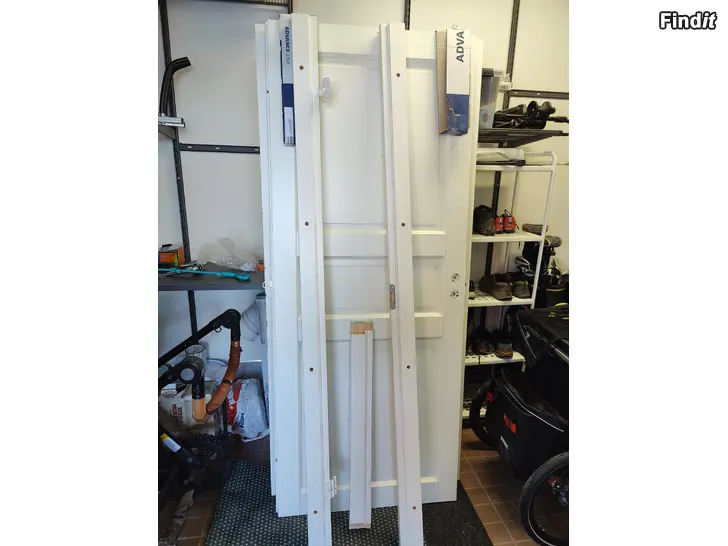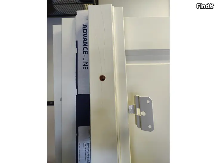 Swedoors massiva ljudreducerande innerdörr. Säljes p.g.a. felbeställning. Varit i användning i 2 månader. Karmen fås med men blivit aningen skadad spricka, se bild då bortmonterats. Inget handtag.