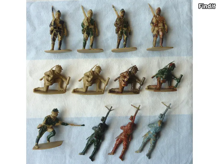myyn kuvissa näkyvät vanhat, muoviset sotilaat, jotka kaikki ovat