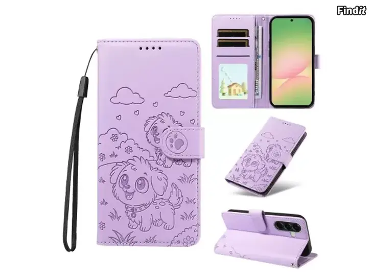 Tämä Samsung Galaxy A57 5G -kotelo yhdistää tyylin ja käytännöllisyyden. Kestävä keinonahkainen kansi tuntuu miellyttävän pehmeältä kädessä ja suojaa laitetta päivittäisessä käytössä. Koirakuviollinen pinta tuo yksilöllisyyttä ja erottuvuutta. Tässä lompakkotyylisessä kotelossa on 3 korttipaikkaa sekä yksi setelitasku. RFID-suojaus estää luvattoman korttitietojen lukemisen. Taittuva jalusta helpottaa videoiden katselua ja videopuheluita. Irrotettava ranneke lisää käytännöllisyyttä ja mukavuutta.