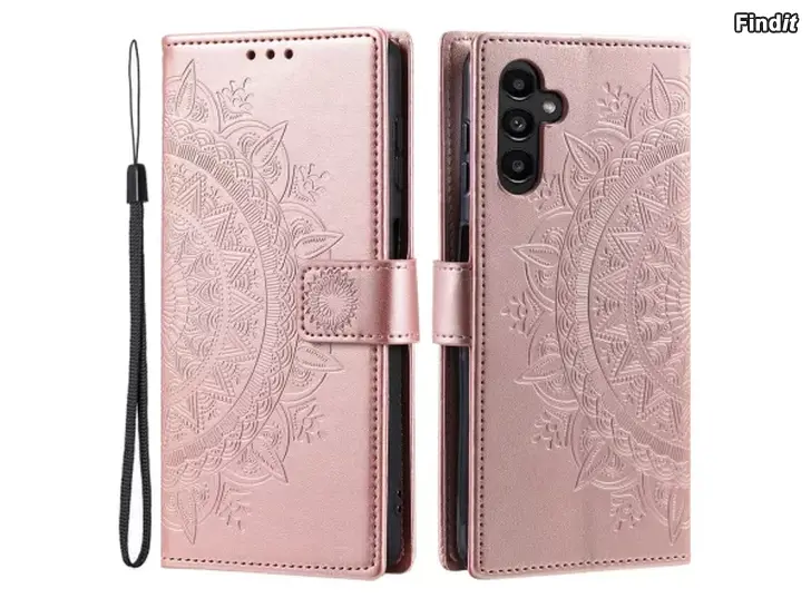 Ruusukulta suojakotelo Samsung Galaxy A37 puhelimeen, jossa on upea mandala-kuvio painettuna nahkaan. Näissä kuorissa on kolme paikkaa luottokorteille, setelitasku sekä kiinnike puhelimelle. Suojakotelon avulla voit tukea puhelimen vaaka-asentoon ja katsoa esimerkiksi elokuvaa puhelimen näytöltä. Avattava kansi antaa hyvän suojan puhelimen näytölle.