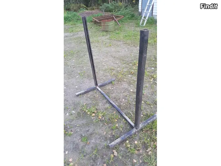 Toko-hyppyesteen kehikko metallia. Mitat: pitkä tolppa 105cm, jalasten pituus yhteensä 70cm ja laudanpituus joka tulee rakoihin 101cm ja paksuus 12mm. Lautoja ei ole mukana, vain kehikko.