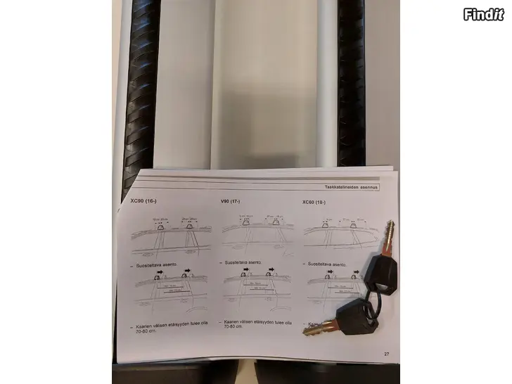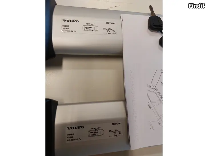 Volvon alkuperäiset lukittavat 2 kpl avaimia sekä tulostetut asennusohjeet