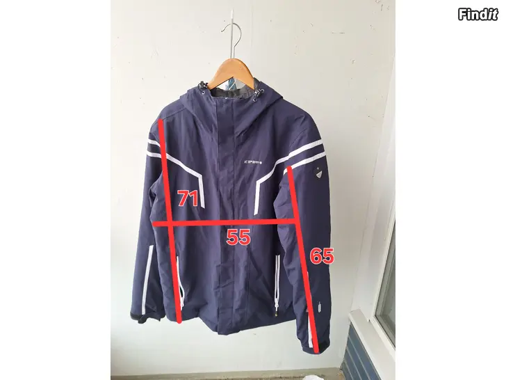 Myytävänä tummansininen Icepeakin käytetty, mutta käyttökuntoinen miesten kevyttoppatakki ja -housut. Erinomainen esimerkiksi lasketteluun. Molempien tuotteiden kokomerkintä 54 eli sopii noin M- ja L-kokoiselle. Suuntaa antavat mitat kuvissa senttimetreinä.