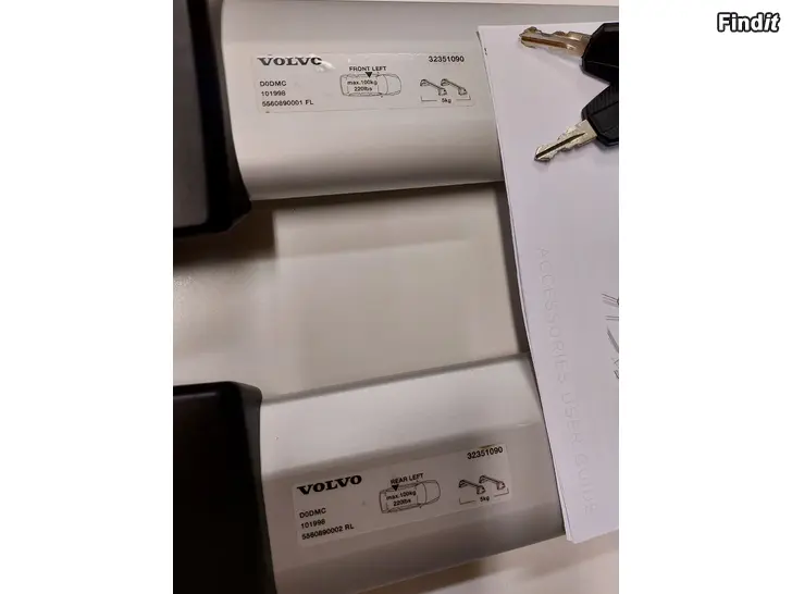 Volvon alkuperäiset lukittavat 2 kpl avaimia sekä tulostetut asennusohjeet