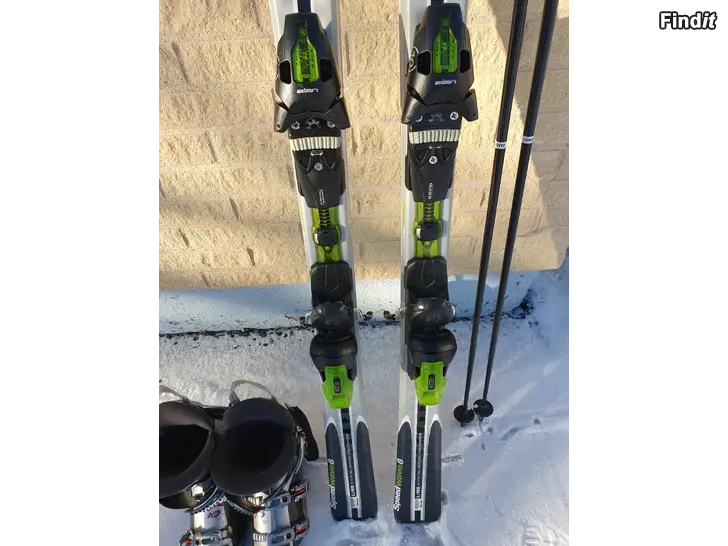 Elan 160 cm SpeedWave 8 Laskettelukset ja siteet. Hyvä kuntoiset, pohja huollettu ja hyvät kantit. Monot, n 41- 42 jalan koko. Sauvat. Ja kypärä. Kaikki hyvässä kunnossa ja muutamia kertoja ollut käytössä.