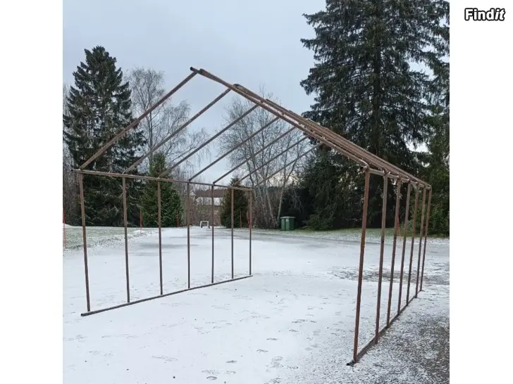 Myydään jämäkkä ja suorarakenteinen metallirunko, joka sopii monenlaiseen käyttöön esim. varasto, autokatos, hallikatos, autotalli, traktori suojaksi, työkalukatos tai esimerkiksi pressuhallin rungoksi.