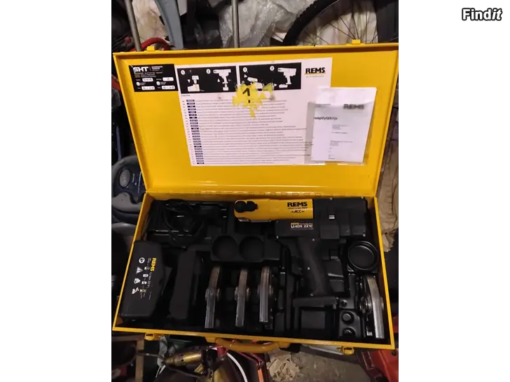 Myytävänä kuvassa oleva Rems minipress putkipuristin 22V, leuat M12,M15,M18 ja M22 akku 1,5 Ah.