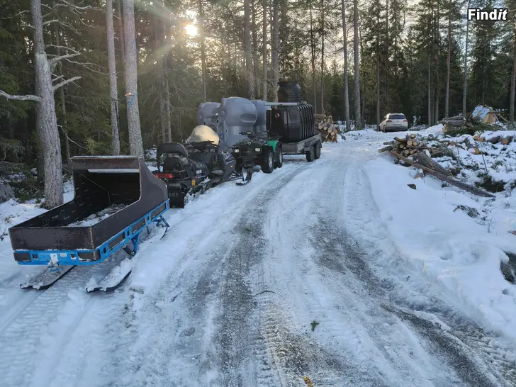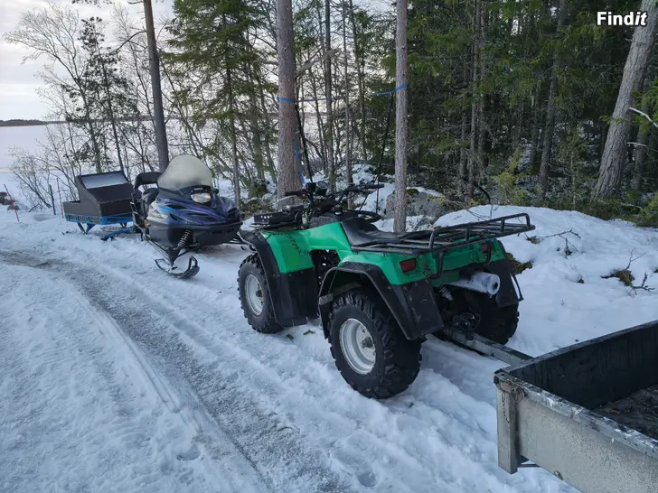 Kawasaki fyrhjuling,vinsch,skacktblad och 2st nya däck.Ny startmotor,bara till tuta o köra.Årsmodell -95 i körbart skick