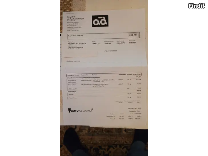 Huom.Autossa korjaamolla todettu
