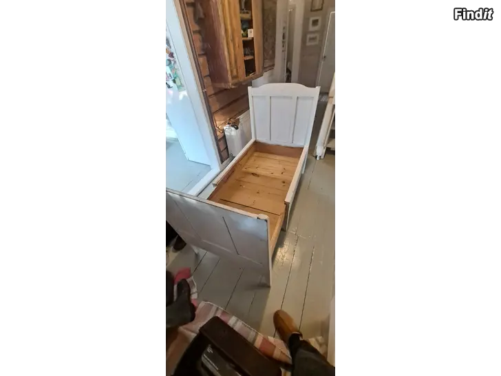 Sivustavedettävä sänky,hyvökuntoinen,sisäleveys 65cm,pituus 100-190cm.