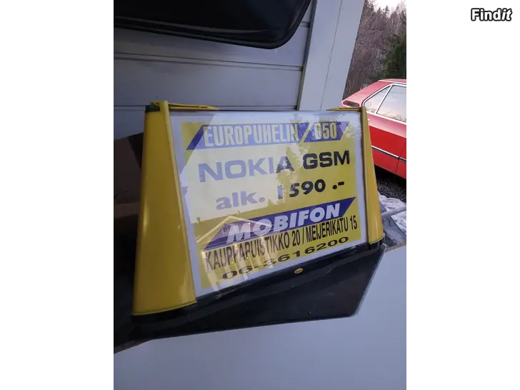 Retro kyltti joka ollut ennen taksin katolla mainoskylttinä.