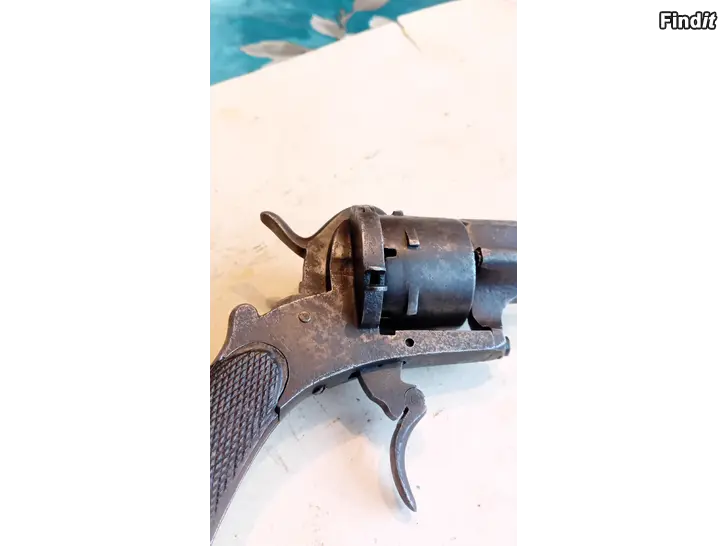 Kuvien mukainen isokaliberinen Espanjalainen Piikkipatruuna revolveri jostain 1880 luvulta joten on ikänsä puolesta lupavapaa Kaliberi 12 mm. kokopituus 23 cm. piipun pituus 11 cm. Aseessa on kääntöliipaisin jonka voi kääntää etuasentoon. Ase on täysin ehjä ja toimintakuntoinen joten on hieno esine keräilijän kokoelmaan. Tarjouksia voi myös esittää