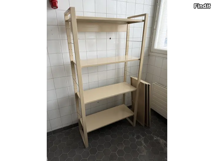 Stabil metallhylla med justerbara hyllplan.