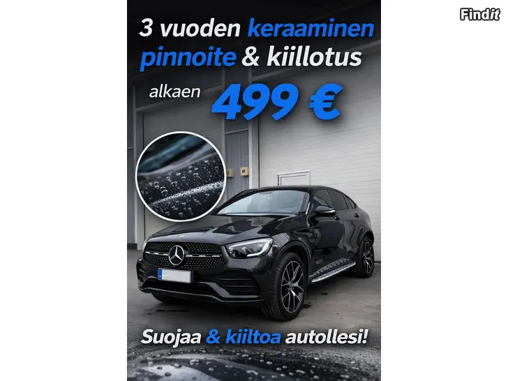 Ammattimainen koneellinen kiillotus palauttaa maalipinnan kirkkauden, jonka jälkeen laadukas keraaminen pinnoite suojaa pintaa jopa 3 vuoden ajan.