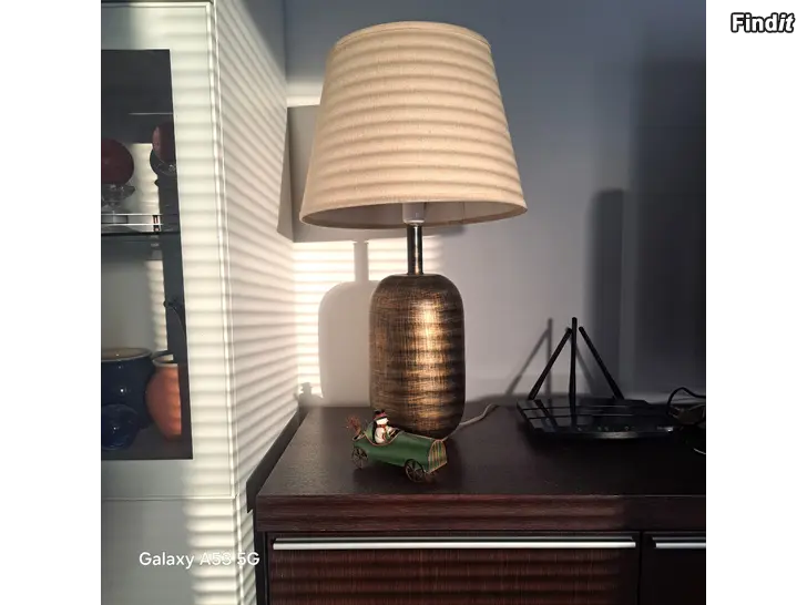 Bordslampa brun med skärm.