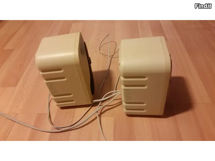 toimivat kaiuttimet, hieman kellastumaa kaiuttimen muovipinnassa