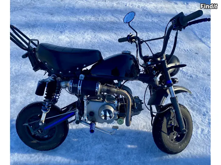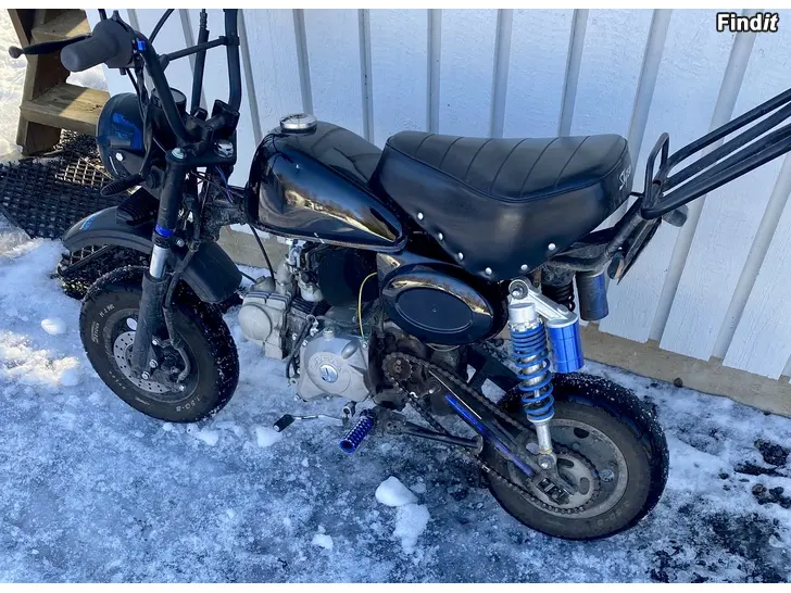 Den är nu utrustad med 70cc, original 50cc motor samt originaldelar följer med, så den enkelt kan byggas tillbaka till original vid behov.