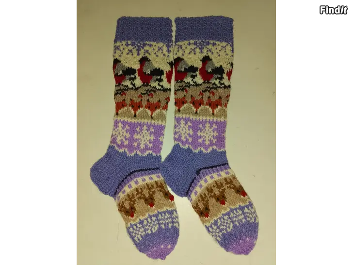 Villasukat 7 veljestä langasta. Varren mitta 35 cm ja jalkaterä 26.5 cm. Postikulut tarvittaessa 4e Postin s-kokoisessa paketissa manner-Suomen alueella. samassa paketissa mahtuu myös muuta.