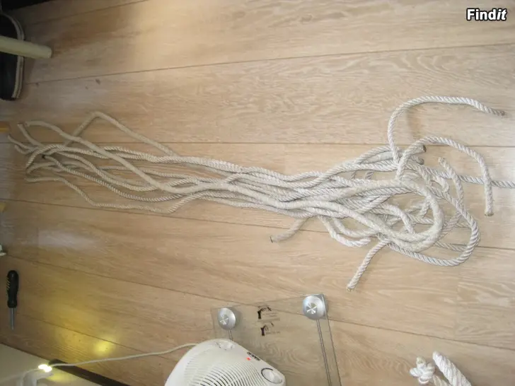 Kevytpeite ja uutta narua. Monta köysipätkiä , pisin n. 3m . Svar på svenska går bra