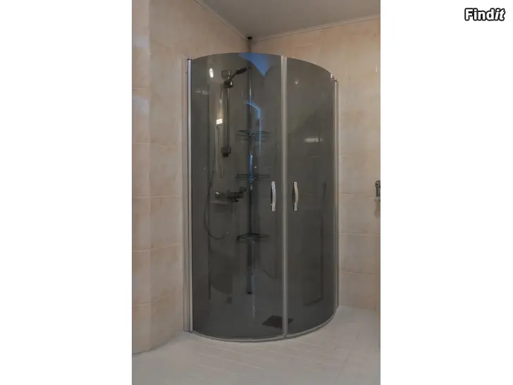 Kaapissa on kulmamalli, 90cm x 90cm, kaksi kaarevaa ovea vetimillä. Soveltuu asennettavaksi kylpyhuoneen nurkkaan olemassa olevan lattiakaivon yhteyteen.