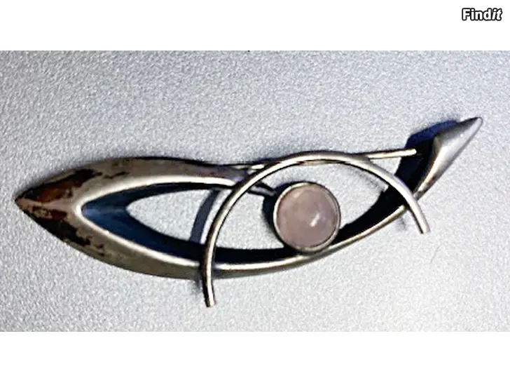 Vintage rintakoru hopea ja ruusukvartsi, design hopeaseppä Martti Viikinniemi, leveys 50 mm, paino 2,8 g, leimat: MV, kruunu, 813H