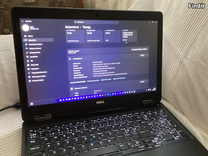 Dell Latitude E5550, yrityskannettava, Windows 11 Pro aito lisenssi aktivoitu puhdas asennus, uusin versio 25H2, valaistu näppäimistö, iso 15,7” näyttö, 128gb ssd, 8gb Ram, huippu siisti ja nopea tietokone, nykyaikaiset liitännät,