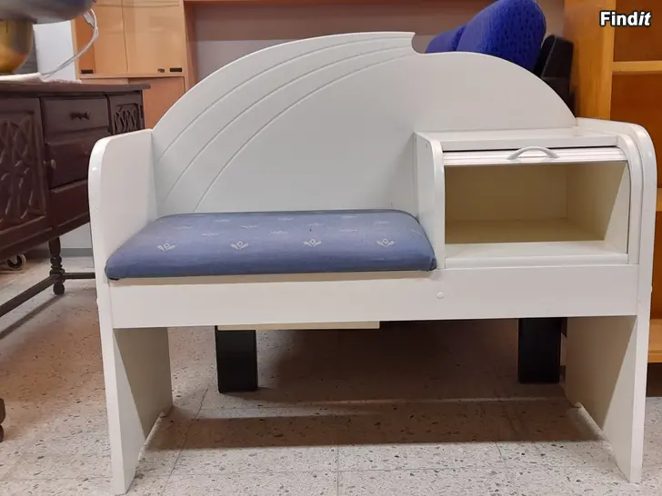 Vit Telefonbord, stol med dyna med fast sidobord.
