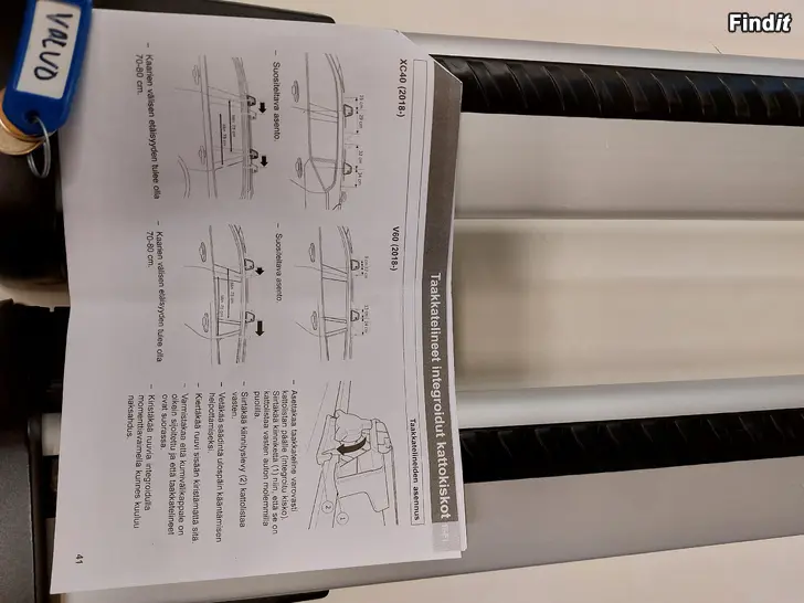Volvon alkuperäiset lukittavat 2 kpl avaimia sekä tulostetut asennusohjeet