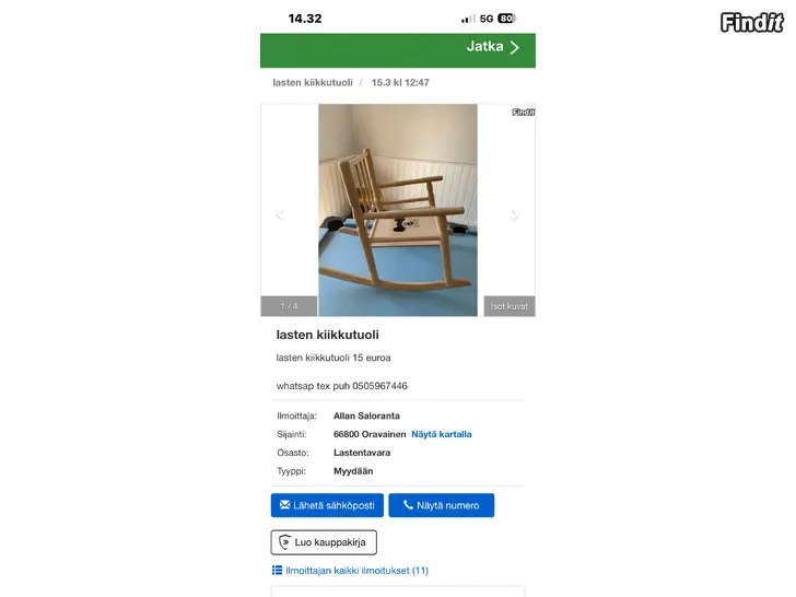Findit ei vastaa ilmoitetusta tuotteesta tai ilmoituksen sisällöstä. SMS-viestien lähettäminen ilmoittajalle mainostarkoituksessa on kiellettyä. Ilmoittaja ei halua ilmoitus- ym. myyjien soittelevan. Jos sinulla on muuta kysyttävää tai mielipiteitä, ottakaa ystävällisesti yhteyttä asiakaspalveluumme.