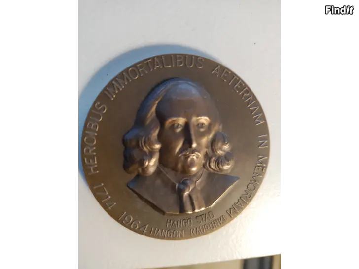 Hangon kaupunki on v. 1964 painattanut tämän pronssisen 250-vuotismuistomitalin Hangon Riilahden meritaistelusta.