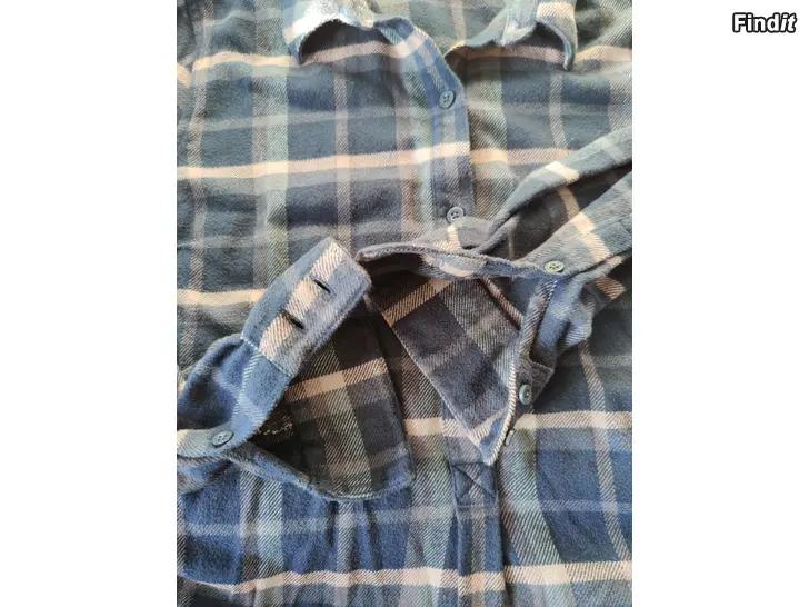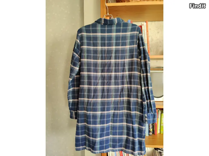 Långarmad skjortklänning i bomullsflanell av 100 procent ekologisk bomull, tyget är mjukt borstad på båda sidorna, bekväm och härlig förl varjedag bruk, sidfickor finns. Mått: armhåla till armhåla ca 53 cm, ärm från armhåla till ärmslut ca 52 cm, längd från nacke till nederkantl ca 90 cm, nästan oanvänd, bra i skick, färgerna på klänningen är klara, ljuset på bilderna bara blekar färgen lite. Kas posta, frakt tillkommer.