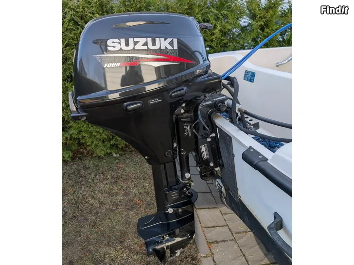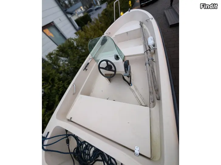 Veneessä 20 hp moottori. Tyyppikilven mukaan mahdollista rekisteröidä max 30kw moottorilla.