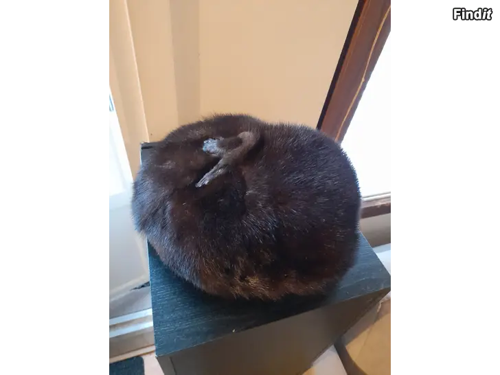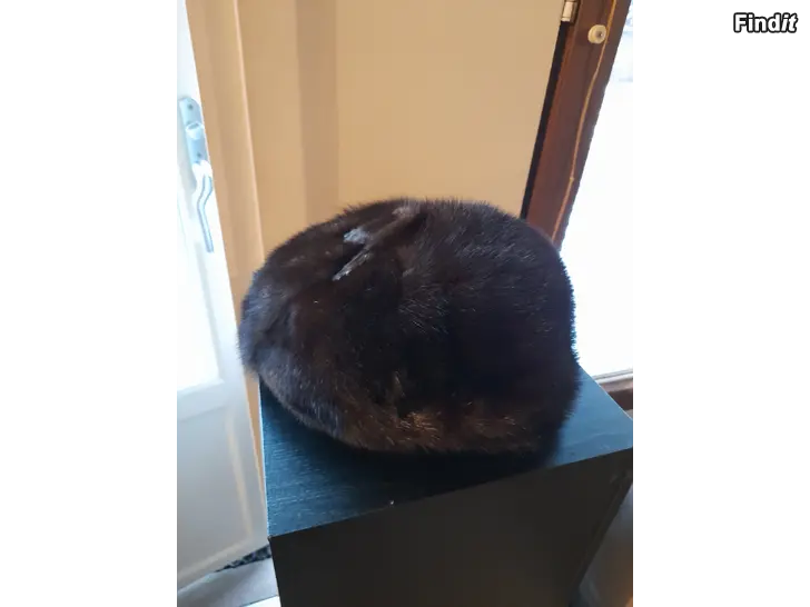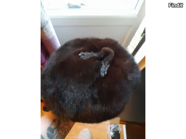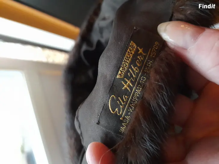 Minkkihattu. Oikein hyväkuntoinen. Lapussa lukee Muotiliike Eila Hilbert, Vaasa.