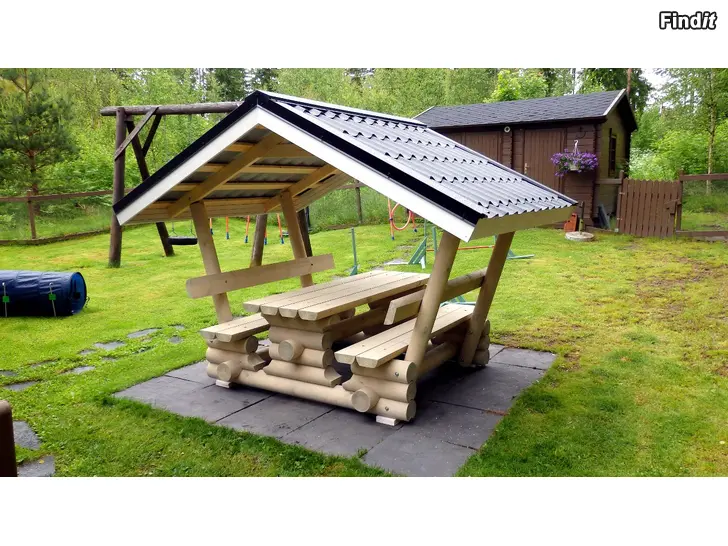 Perinteinen hirsikaluste katolla on täydellinen pihakaluste. Upea ulkonäkö ja käytännöllisyys tekee siitä erinomaisen pihakalusteen jokaisen pihalle. Valmistettu valikoiduista mäntytukeista, jotka on kaadettu paikallisesti.