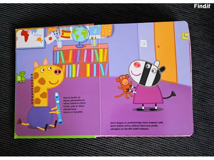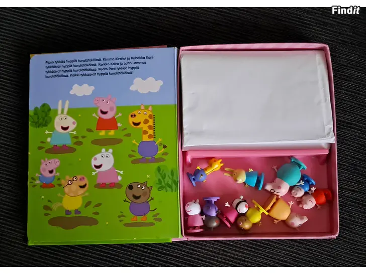 Sisältää kuvakirjan, 10 leluhahmoa ja leikkimaton.