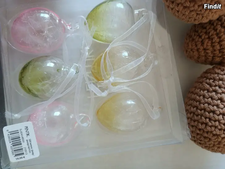 Virkatut styroxmunat sekä Pentikin lasimunat . Kaikki käyttämättömiä .