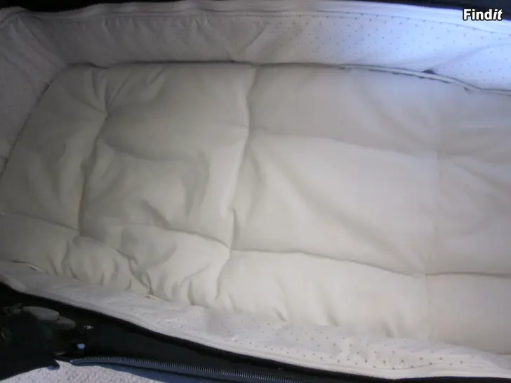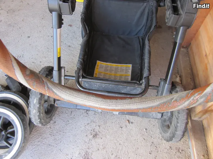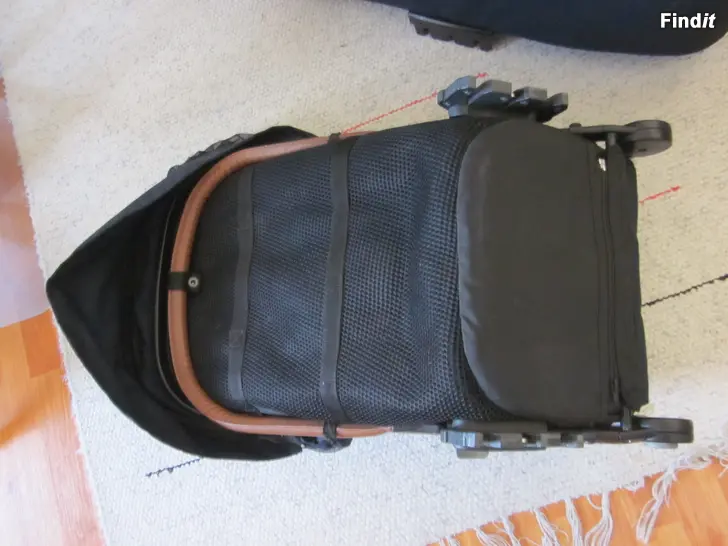 Tekonahka kulunut kahvasta. Makuuosan tarra irtoilee. UV-suojan ylävetoketju ei enää mene kiinni.