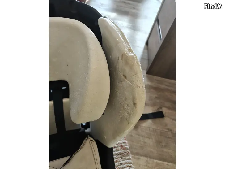 Styroxen lite sönder på stolens övre del se bild. Påverkar inte stolens funktion, detta händer ofta när barn tar stöd här då de klättrar in. Fixat med gorillatejp se bild. Tyget något blekt av solen, i övrigt är stolen i fint skick och självklart okrockad.