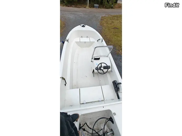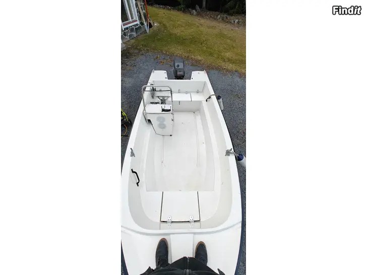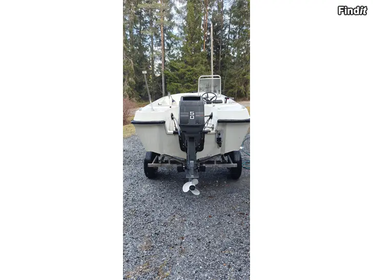 Säljes en bra fungerande båt, båten är av årsmodell 1986 så finns märken av bruk men bra i skick för sin ålder, motorn är en 50hk mariner från 1995 som är väldigt bra i skick har el trim och el start, el trimmen behöver en service fungerar nog men släpper ner motorn saktamak. Motorn blivit servad varje år före bruk, trailern är en rostfri hemlagad strand trailer som följer med, finns att köpa till en garmin kartplotter som är 2 sommar använd för 500€ extra så lämnar den i båten.