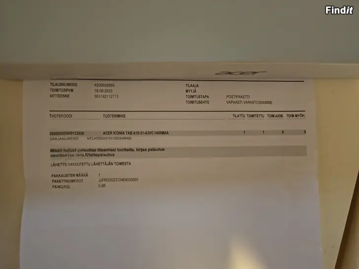 Acer iconia a10 tabletti