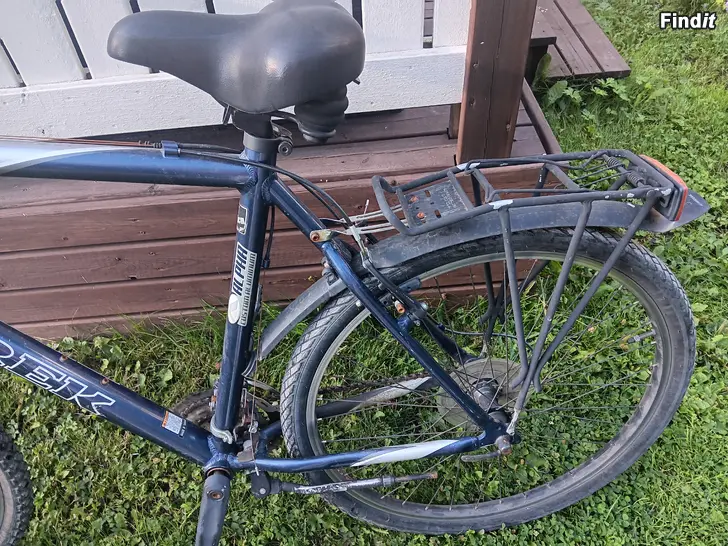 Pyörä on seissyt ulkona koko talven. Ruostetta löytyy jonkin verran ja muitakin kauneusvirheitä. Pieni huolto ei varmaan haittaa mutta pyöräilee tällä näinkin. Talvikumit tulee mukaan. Yhteydenotot sähköpostilla.