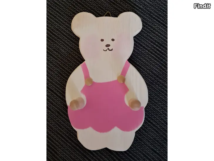 Puukettu Nalle naulakko, koko 12 x 20 cm.