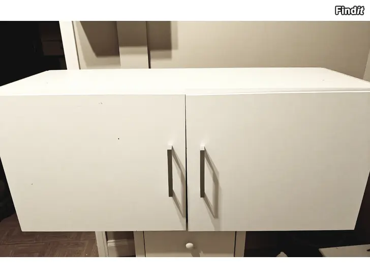 Myytävänä yksinkertainen kaappi, alun perin yläkaappi, mutta käytetty lattiakaappina. Olisi mahdollisesti parempi sokkelilla. Leveys: 96 cm, korkeus 40 cm, syvyys 38 cm. Ilman hyllyjä. Haku Pietarsaaresta.
